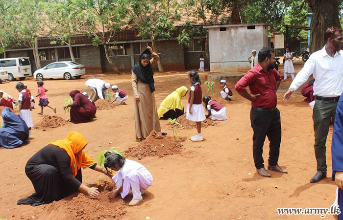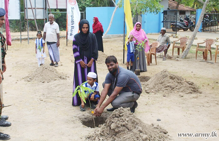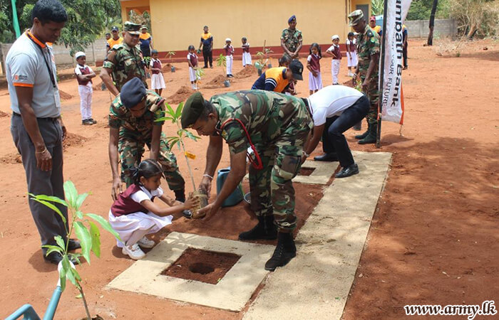 542 Infantry Brigade troops with the patronage of Sampath Bank conducted the programme. In addition, 140 mango saplings were also planted in those school compounds to coincide with the day’s programme.