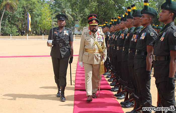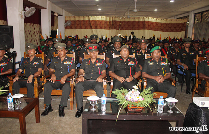 Afterwards, the new GOC in his office placed his signature for an official document to mark the assumption of his duties as members of the Maha Sangha began chanting ‘Seth Pirith’. After a while, he formally addressed troops at the Division HQ.