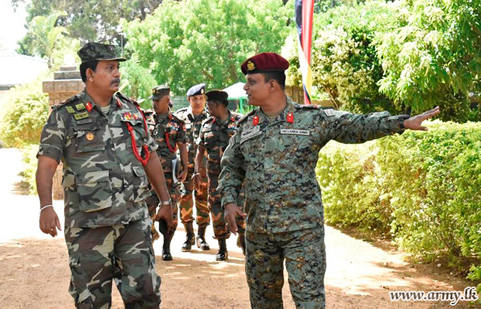 The GOC began his visit by inspecting various sections under the 553 Infantry Brigade followed by a visit to 6 Sri Lanka Sinha Regiment and 14 Sri Lanka National Guard Battalions. The visiting GOC was warmly welcomed by the Commander 553 Infantry Brigade, Brigadier B.G.S.K Perera RSP after he was greeted listener a Guard Turnout at the entrance.