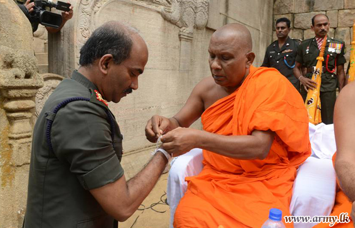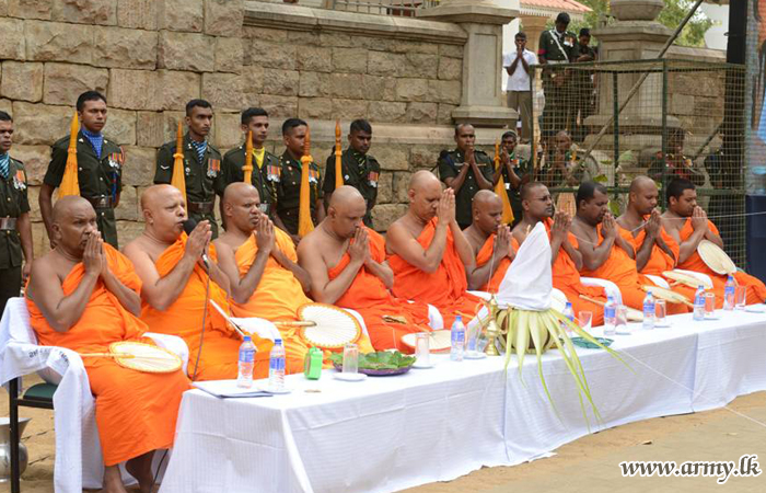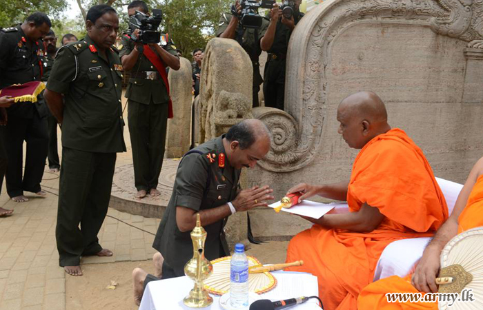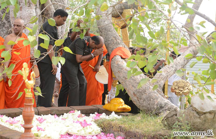 In another gesture, a special cash donation of Rs 1 million for development of the sacred place was then offered by the Commander to Ven Ralapanave Dhammajothi Nayake Thero on behalf of the Chief Incumbent at Jaya Sri Maha Bodhiya as a symbolic gesture of appreciation towards the development of the sacred place and the well-being of the Sangha fraternity after the main ceremony.