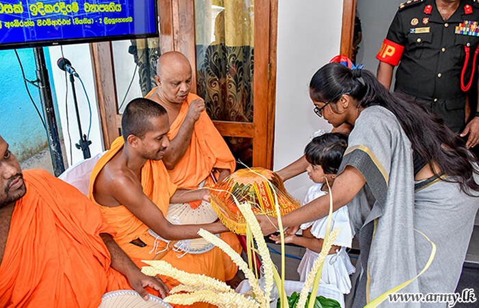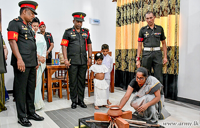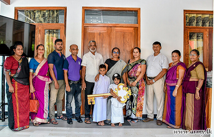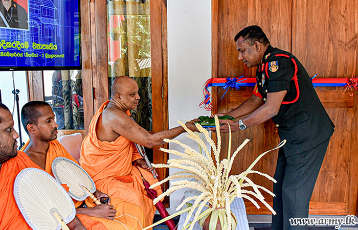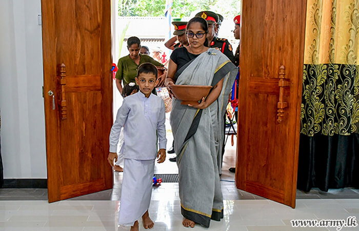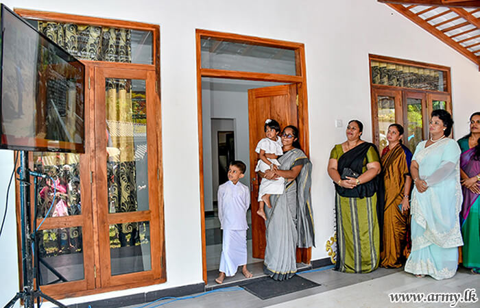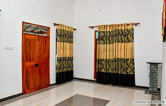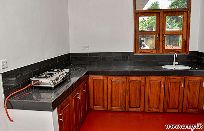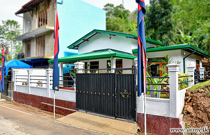 The housing project with two bed rooms, a dining hall, a kitchen and a bathroom was undertaken by technically qualified SLCMP, Corps of Engineer Service Regiment with the main sponsorship, provided by Canada-based Mrs Chamila Jayathillake and her husband, Mr Sonders Jayathillake.