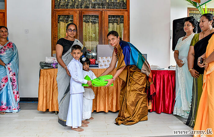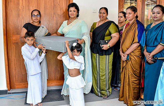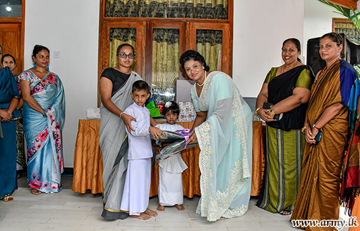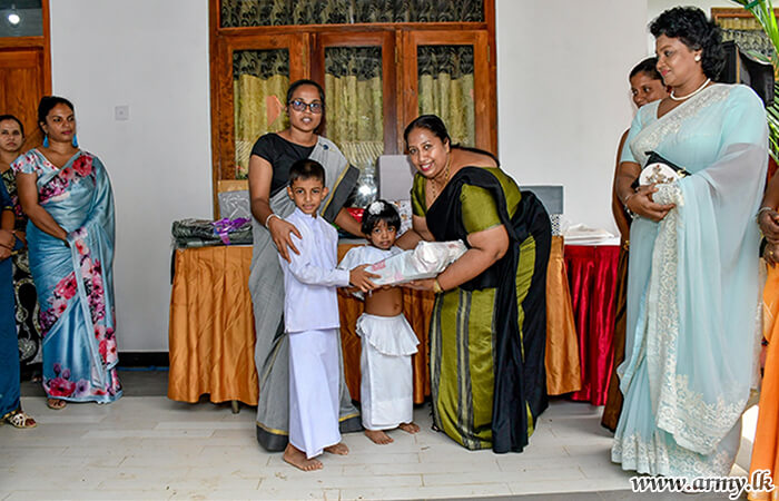 Mrs Janaki Liyanage, President, Army Seva Vanitha Unit, together with Mrs Priyanthika De Zoysa, Chairperson, Sri Lanka Corps of Military Police Seva Vanitha Branch also jointly contributed with required monetary assistance and essential household items.
