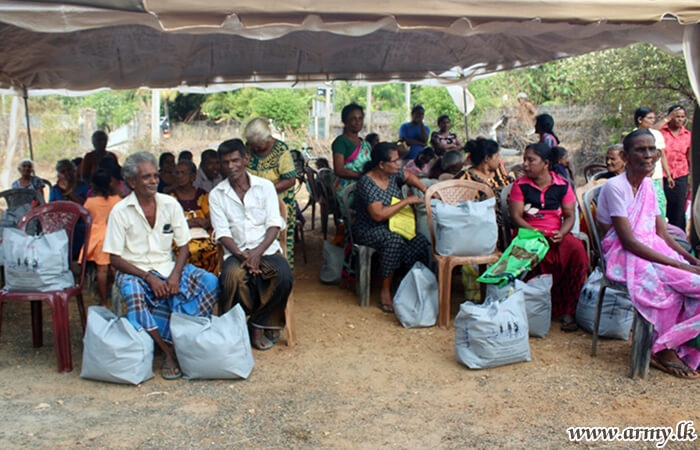 In order to relieve economic burdens of low-income group families, resident in Uduvil area in the Jaffna peninsula, troops of the 51 Infantry Division with the financial support of the overseas-based military veteran, Major General Ravi Rathnasingham (Rtd) distributed 50 free dry ration packets among villagers on Wednesday (6 Sept).
