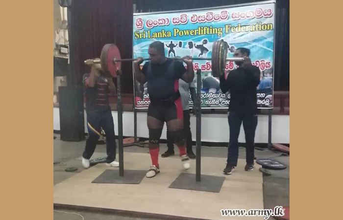 Corporal R.M.S.S Rathnayake and Private K.T Vimantha in 105 kg and 120 kg categories respectively won Gold medals in the same tournament. Private H.A.S.S Hettiarachchi, Lance Corporal W.V.S.C Jayarathne won 2 silver medals while Corporal D.S.C Ramanayake won the bronze medal.