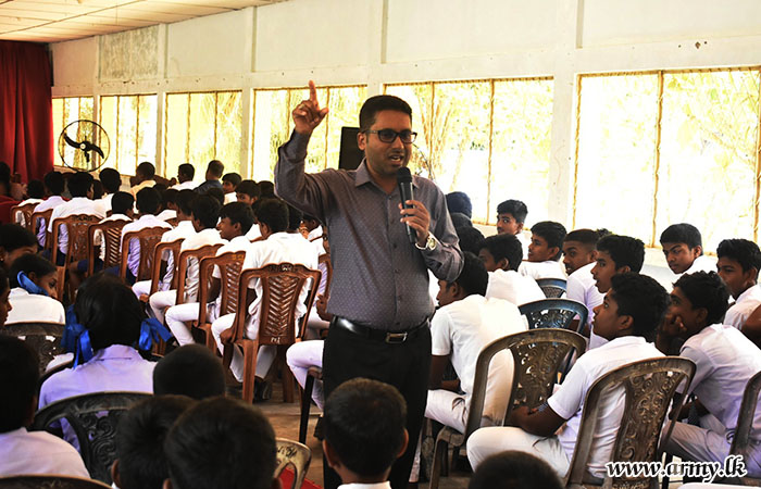 Troops of the 681 Infantry Brigade under the 68 Infantry Division of the Security Force HQ- Mullaittivu organized an awareness lecture on ‘Drugs Prevention’ for school students at Mullaittivu Sri Barathi Maha Vidyalaya on 15 September inside the school premises.