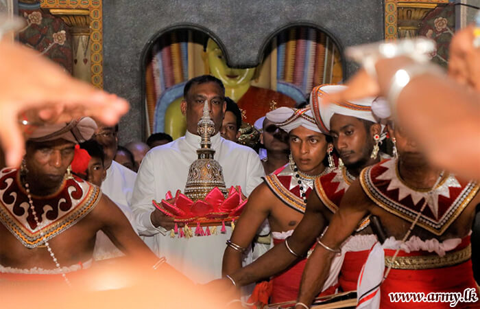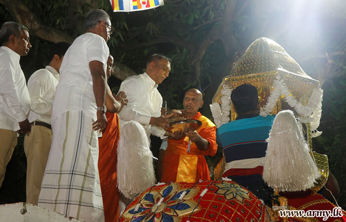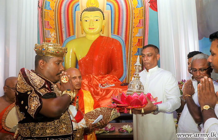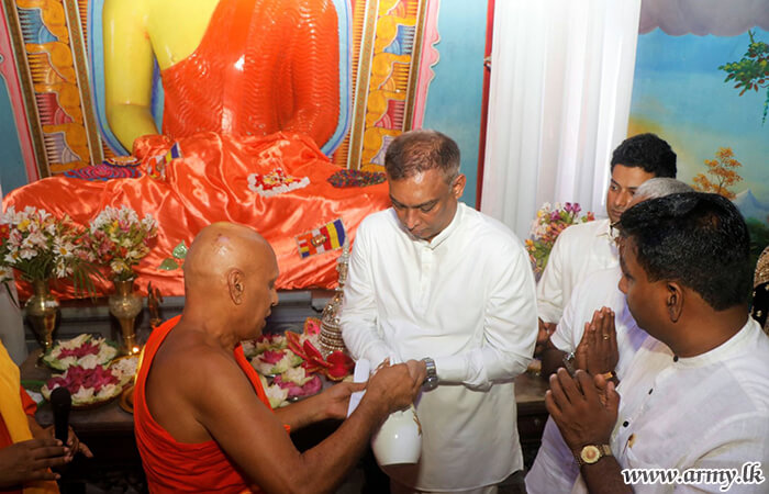 The Commander Security Forces-West (SF-West), Major General U.D Wijesekera RWP RSP USP rcds psc participated in this sacred event representing the Commander of the Army. Troops assisted the arrangements as requested by the incumbent monk and the Dayake Sabhawa.