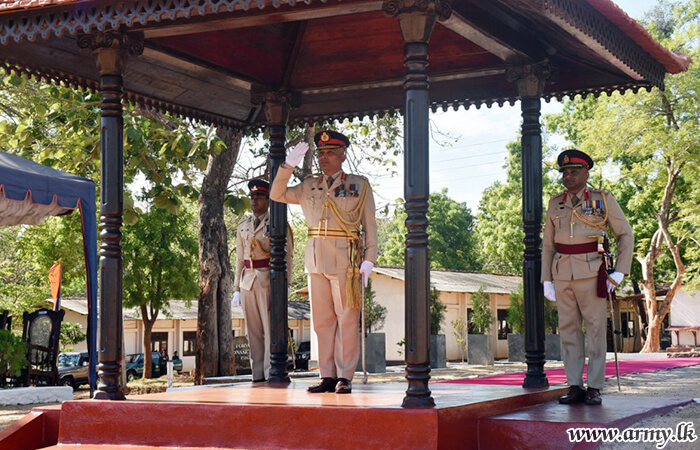 Army troops serving the 23 Infantry Division HQ in Punani on Saturday (16 Sept) extended formal honours to the newly-promoted Major General K.V.N.P Premaratne RSP USP psc, General Officer Commanding (GOC), 23 Infantry Division in accordance with military traditions upon his arrival to the 23 Division HQ after his recent elevation to the rank of Major General.