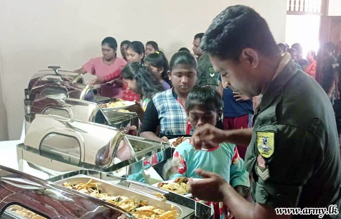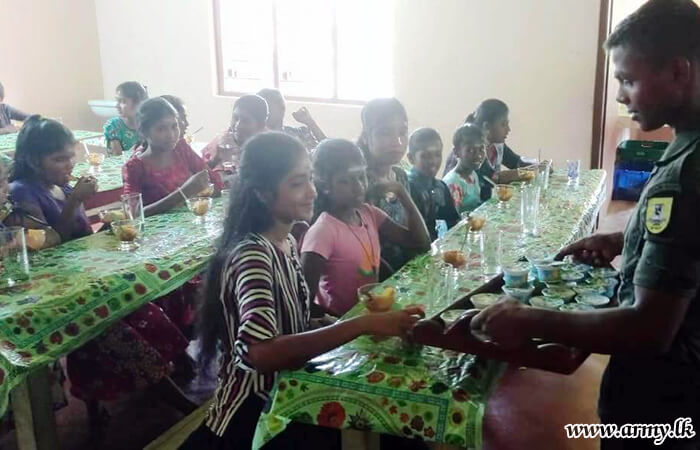 On account of the battalion day of the 7 Gemunu Watch (GW), serving under the 233 Infantry Brigade of the 23 Infantry Division, troops organized a special lunch treat to the needy children at Thilakavathiyar Girls’ Home at Kadiraveli in Batticaloa district on Saturday (16 Sept).