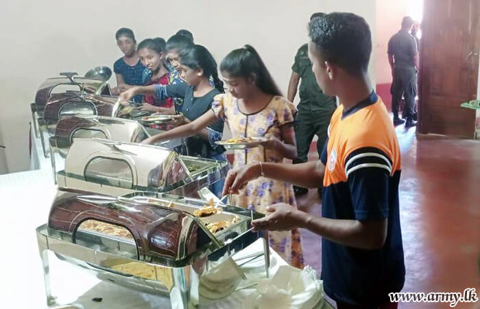 Following guidelines given by Major General M.K.U.P Gunaratne RSP ndu psc IG, Commander, Security Forces- East and Major General K.V.N.P Premaratne RSP USP psc, General Officer Commanding, 23 Infantry Division, the lunch treat was launched.