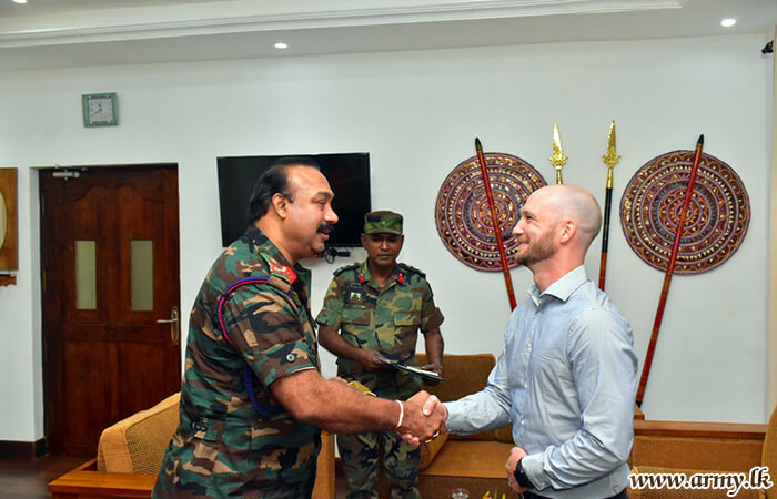 Mr. Harsha Senanayake, Security/Readiness Programme Officer and Mr Ron Bebusschere of Military Police Security Services of Canadian High Commission were warmly welcomed by Major General M.K.U.P Gunaratne RSP ndu psc IG, Commander, Security Forces - East on their arrival.
