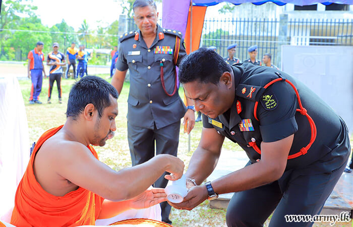 On arrival, the day's chief invitee, Major General D.M.K.D.B Pussella RWP RSP who is instrumental in initiating the noble concept was received by Major General M.T.K.R Silva KSP, SLAVF Deputy Commandant. Later, the Commandant laid the corner-stone and signalled the inauguration of the erection at the auspicious time amid 'Seth Pirith' chanting of the Maha Sangha.
