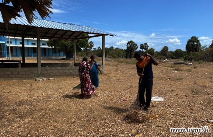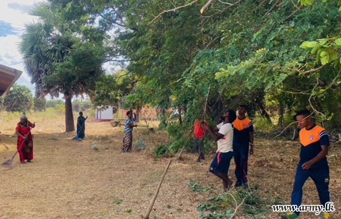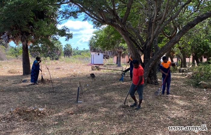 23 Gemunu Watch (23 GW) troops of the Security Force HQ - Jaffna arranged a cleaning programme to clear the surroundings of Mariyamatha Church at Muhamalai on Friday (15 Sept) before its annual feast got underway.