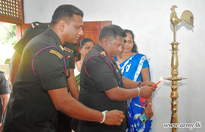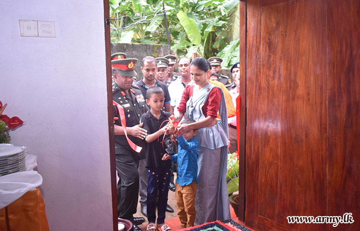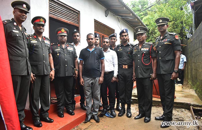 The beneficiaries, Mrs K.S.K Perera and her family members who reside in Wakwella, Galle, received the keys from the Chief Guest for the occasion, Major General R.A.J.N Ranasinghe RSP USP ndu, General Officer Commanding of the 61 Infantry Division on September 11, 2023, during a simple ceremony.