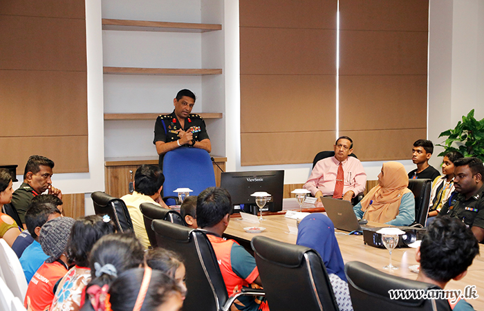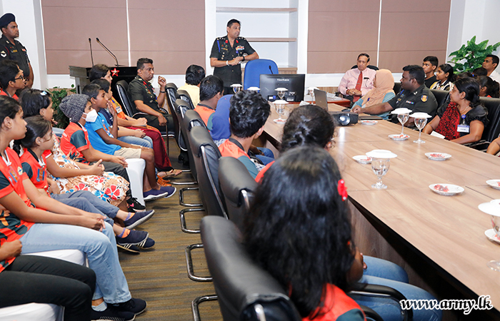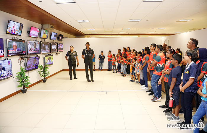 At first, the group of 29 youngsters, led by the broadcaster, Mr. Prince Herath, teachers of several Kandy-based schools and parents was received by the Director Media, Brigadier I.H.M.R.K Herath USP ndc psc, on arrival at the Directorate of Media premises before the group was presented with an overall picture of the functional aspects of the Directorate.