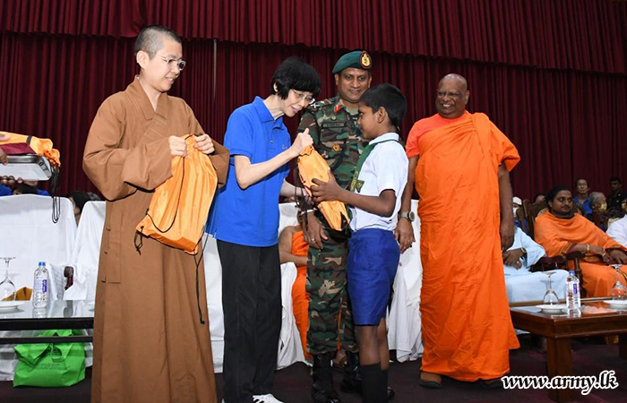 Following a donation sponsored by ‘Best Wishes Foundation - Malaysia’ of Ven Dr. Bodagama Chandima Thero, Advisor and Coordinator to the organization, the Security Force Headquarters - Wanni was able to distribute school accessories among 500 needy students and essentials among pregnant women residing in Anuradhapura and Vavuniya districts on Tuesday (21 Sep) at the Cultural Hall, Vavuniya. The total value of the donation was Rs. 2.7 million.