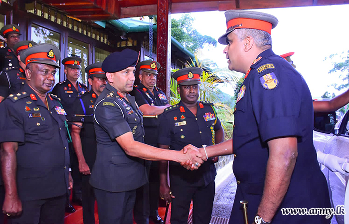 The visiting Chief of Staff of the Army was welcomed by Major General W.W.H.R.R.V.M.N.D.K.B Niyangoda RWP RSP VSV USP ndu psc, Commander, Security Forces - Central at the entrance.