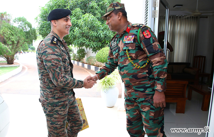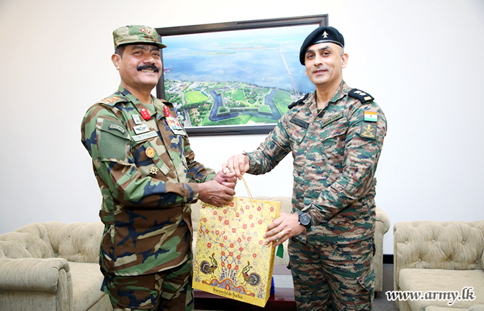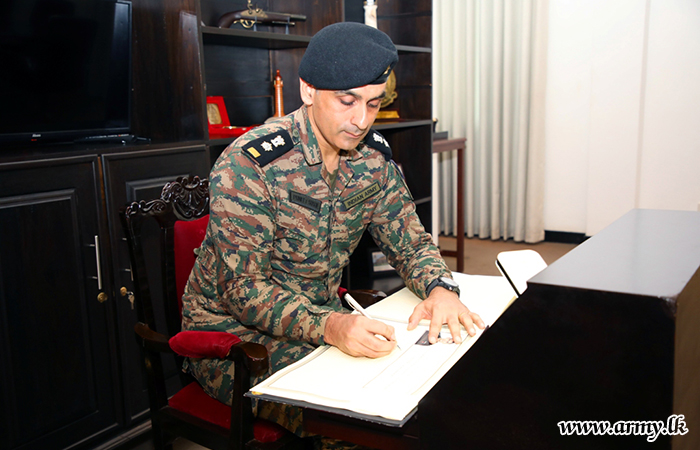 Major General S.R.K Hettiarachchi RWP RSP VSV USP ndu psc, Commander, Security Forces – Jaffna welcomed the visiting diplomat, Lieutenant Colonel Puneet Sushil and had a cordial interaction. He left memories signing the visitors’ book at the Security Force Headquarters in Jaffna before mementoes were exchanged as tokens of appreciation.