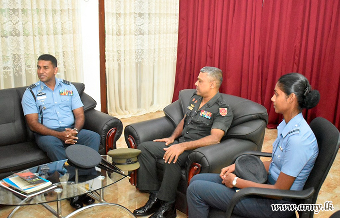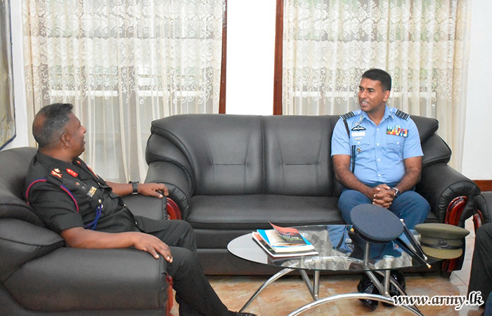 Meanwhile, the Commanding Officer at the Sri Lanka Air Force Station - Koggala, Group Captain C. J Godakanda also paid a courtesy call on the newly- appointed GOC of the 61 Infantry Division on Tuesday (19 Sep)