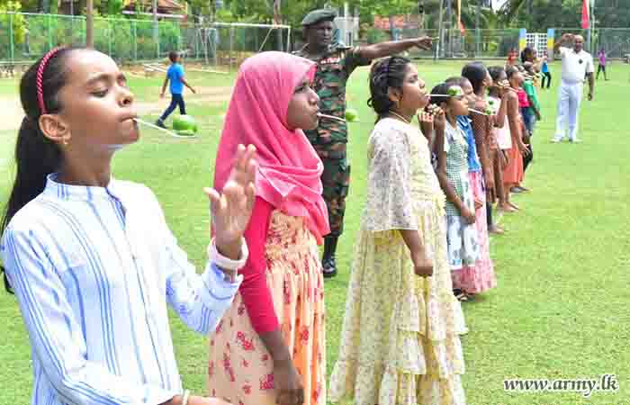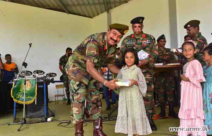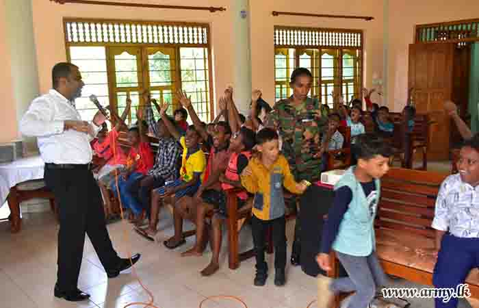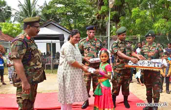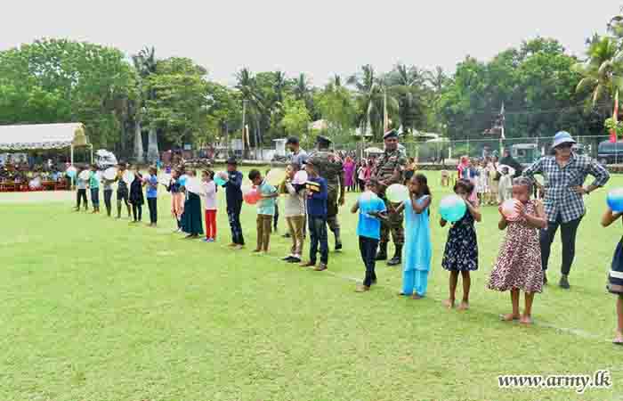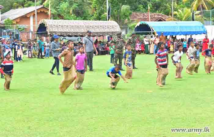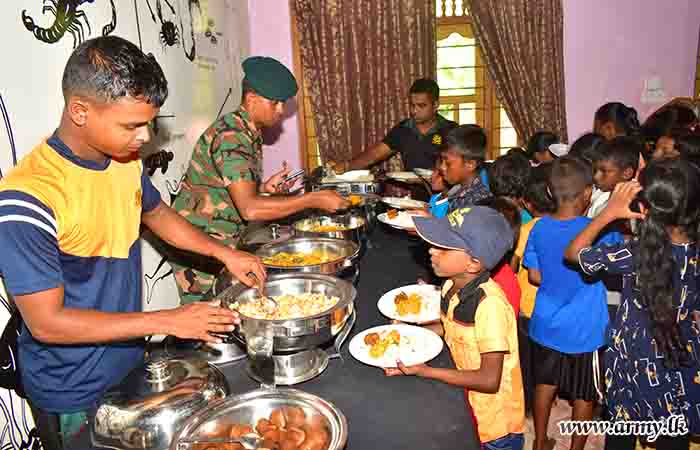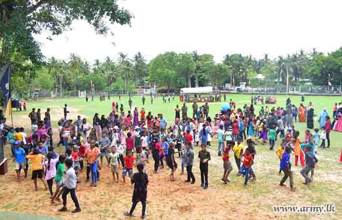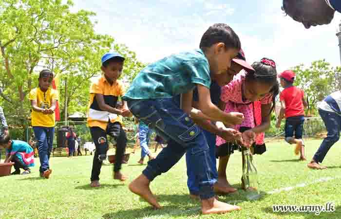 During the event, 150 children representing all ethnicities and religions took part in games and various entertaining events. In addition, 11 (V) Sri Lanka Sinha Regiment (SLSR) troops staged a musical programme and the event provided snacks, a delicious lunch and each of them a gift parcel towards the end of the celebration.