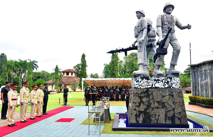 Afterwards, the Colonel of the Regiment, SLSR together with other Senior Officers paid floral tributes to the Sinha Regiment war memorial and invoked blessings on serving SLSR members after merits were transferred to the memory of fallen SLSR War Heroes.