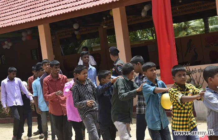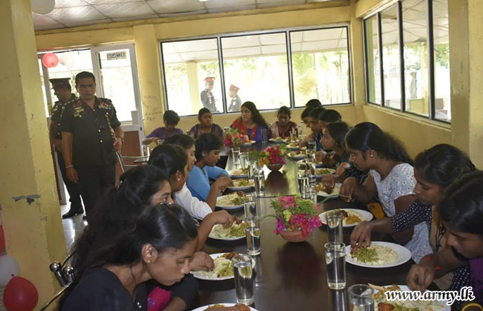 This special event was provided with snacks, and a delicious lunch and each of them a gift parcel towards the end of the celebration. Before providing the refreshments to the Children, the Army troops engaged in a Shramadana Campaign to clean the premises.