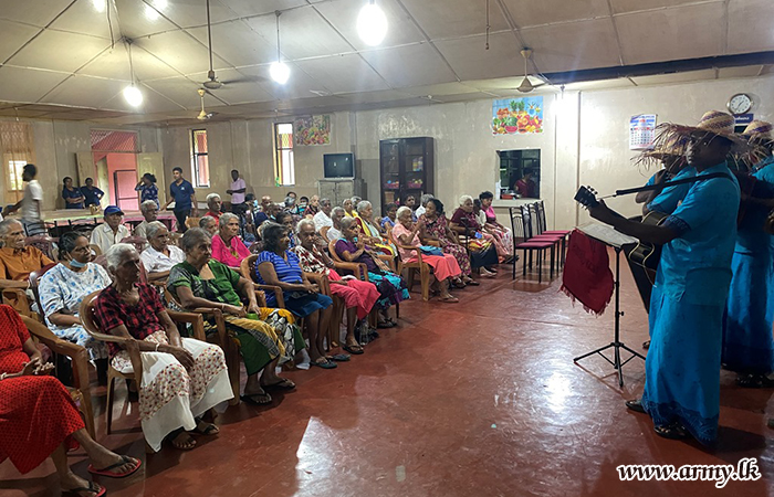 10 Sri Lanka National Guard (SLNG) troops of the 144 Infantry Brigade of the 14 Infantry Division under the Security Force HQ - West on account of the following 74th Army Anniversary and the International Elders’ and Children’s Day carried gift parcels and entertained the residents at Municipal Home for Adults and Children at Battaramulla on Sunday (1 October).