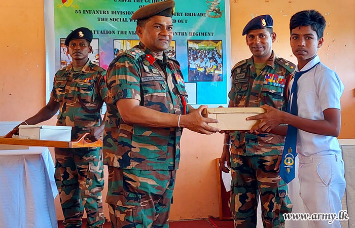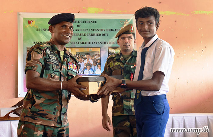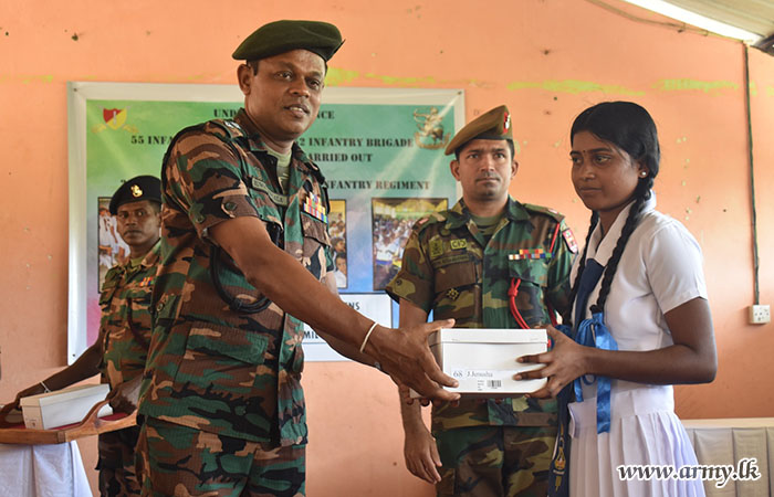 Brigade Commander of the 552 Infantry Brigade, Colonel D.S.S Radalage RWP, Officers and Other Ranks and Mr. Prasad Lokubalasooriya, the representative of sponsors participated in the distribution programme.