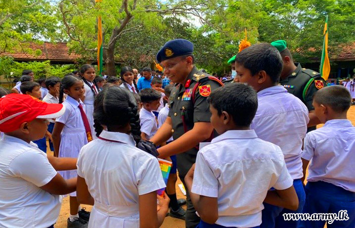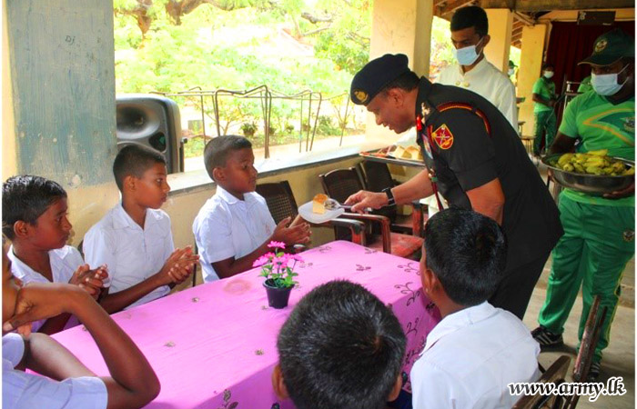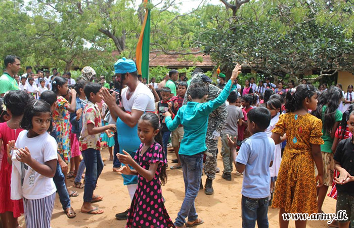 16 Gajaba Regiment (GR) troops of the 143 Infantry Brigade troops of 14 Infantry Division under the Security Force HQ - West (SFHQ-West) entertained 307 school students at Thevanuvara Mailankulam School in Puttalam district to a special meal, games and Calypso music on account of the International Children’s day on Monday (02 Oct).