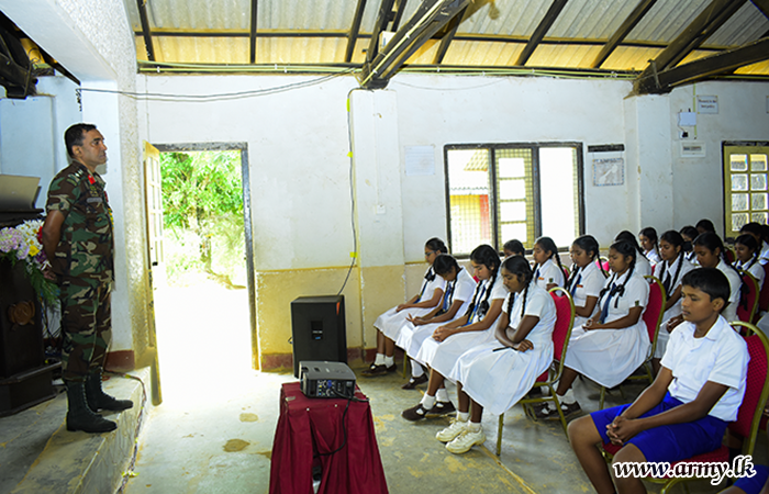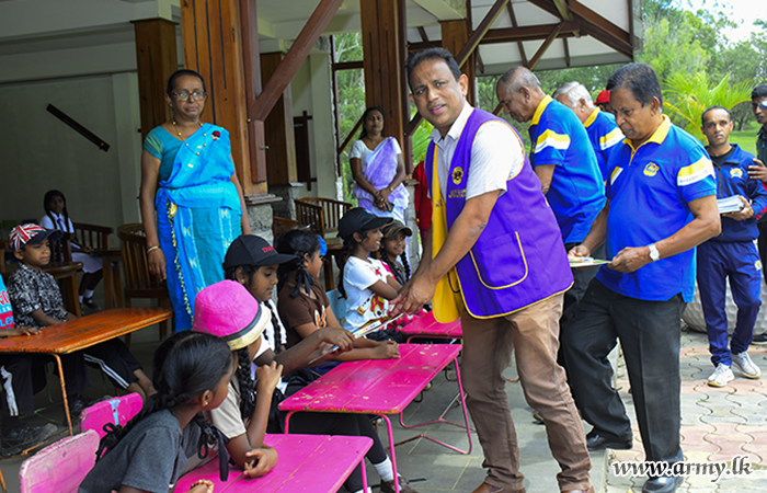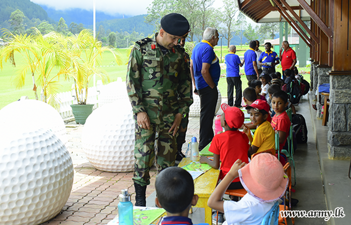 As the first segment of the programme, Colonel W.A.J Hemachandra RSP psc, Colonel General Staff, SFHQ-Central delivered a comprehensive lecture on ‘Leadership Quality’ for students at Diyathalawa Kadurugamuwa Mihidu Vidyalaya before packs of school accessories were given to primary students in the same school after inviting them to the Golf Club ground at Diyatalawa.