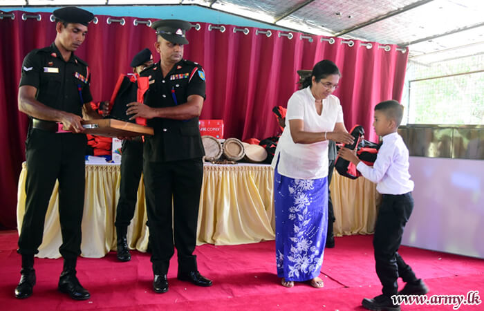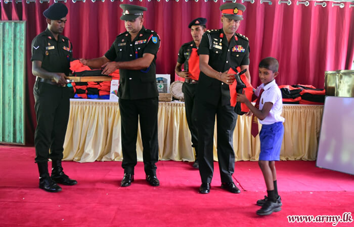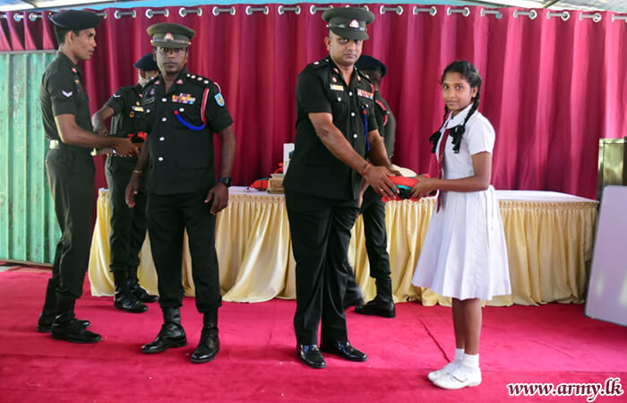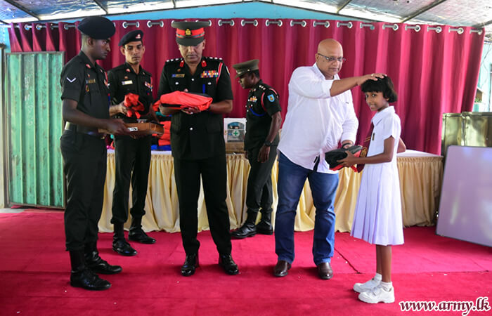24 Infantry Division with the support of 241 Infantry Brigade and 8 Sri Lanka National Guard troops with sponsorship given by two philanthropists distributed a large stock of school equipment and accessories among 185 students learning at Ampara Wadinagala Vidyalaya on Wednesday (4 Oct).