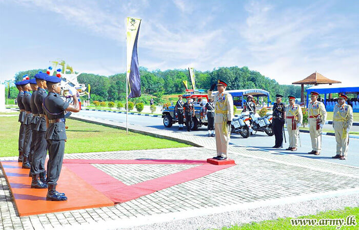 On arrival, he was warmly received by Major General M.T.K.R Silva KSP, the SLAVF Deputy Commandant. After reviewing the Guard Turnout, the newly-appointed Commandant paid his tribute to the memory of fallen SLAVF War Heroes by laying a wreath at the memorial.