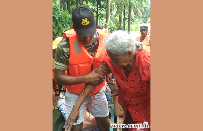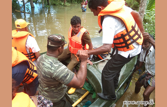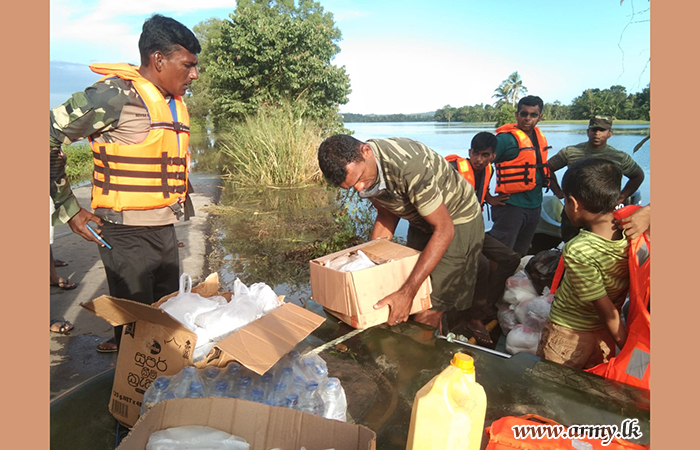 In spite of inclement weather patterns and swelling flood levels, tireless troops of the 61 Infantry Division, engaged in the emergency flood relief operations in Aththudawa, Nariduwa, Naimbala and Thihagoda Divisional Secretariat areas continued to provide cooked meals to those who had been affected due to floods in the past 48 hours.