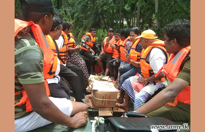 Meanwhile, 9 Sri Lanka Sinha Regiment troops of the 613 Infantry Brigade are continuing their humanitarian assistance role by providing transport facilities aboard Army boats and military vehicles for trapped villagers in the Thihagoda Divisional Secretariat Division areas. The 3(Volunteer) Gemunu Watch troops similarly distributed essential items and meals to the affected-community.