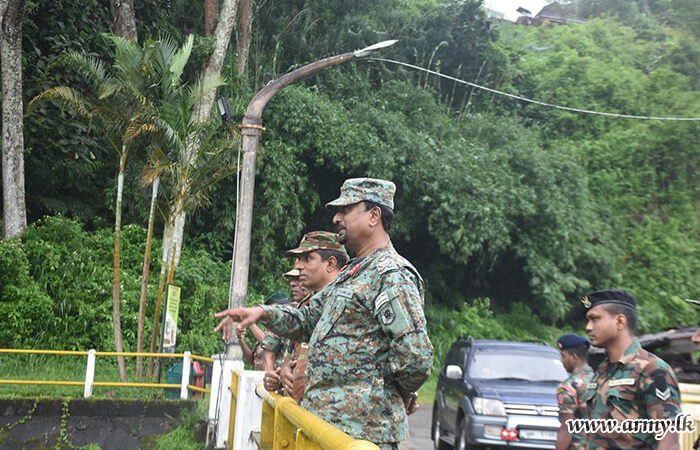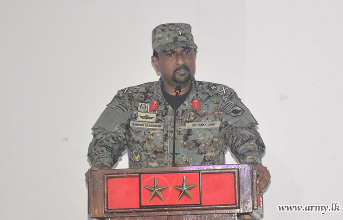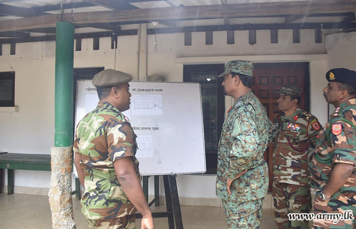 Major General R.M.M Ranasinghe WWV RWP RSP, General Officer Commanding (GOC), 11 Infantry Division continuing his familiarization visits arrived at the 19 Sri Lanka National Guard (19 SLNG) camp serving areas in Lakshapana during 4-5 October with the intention of inquiring about the well-being of the troops.