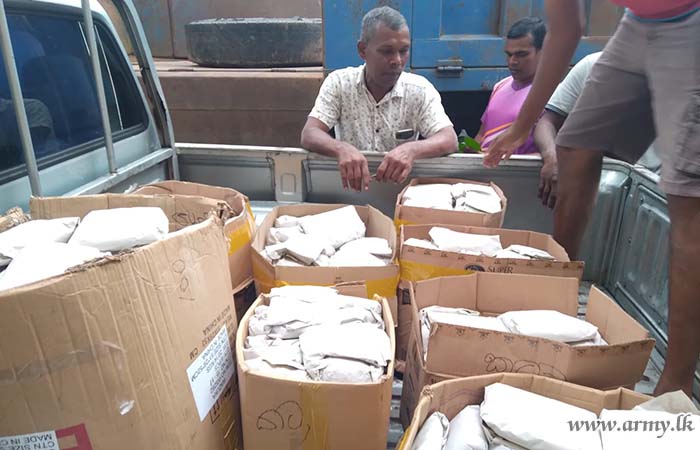 The Basnayake Nilame of the Ruhunu Kataragama Devalaya supported the endeavours of the 12 Infantry Division troops providing dry rations needed for preparation of cooked meals considering the need of those essentials. Troops put up a temporary cook house in the Malimbada GN Division and prepared meals during 8-11 October 2023, approximately for 5,000 people who had found themselves displaced.