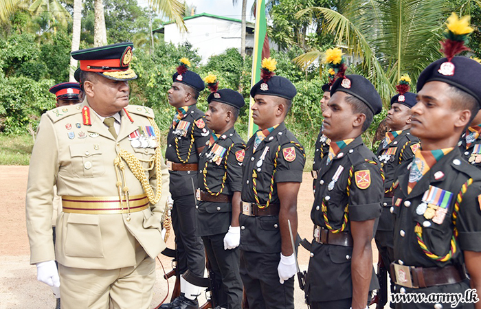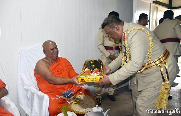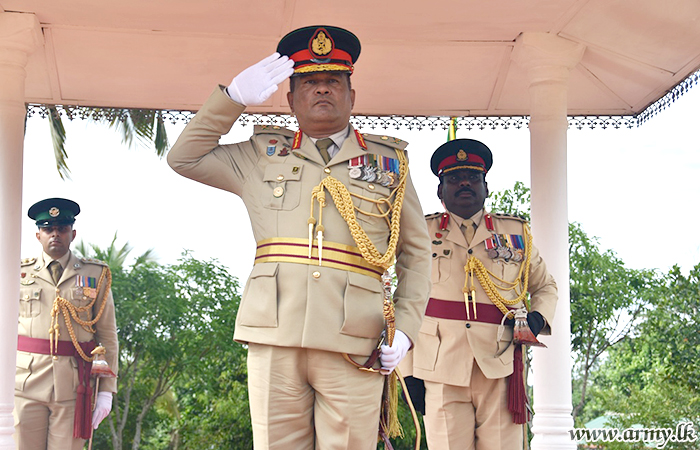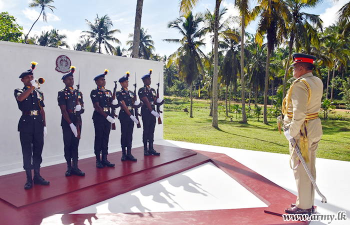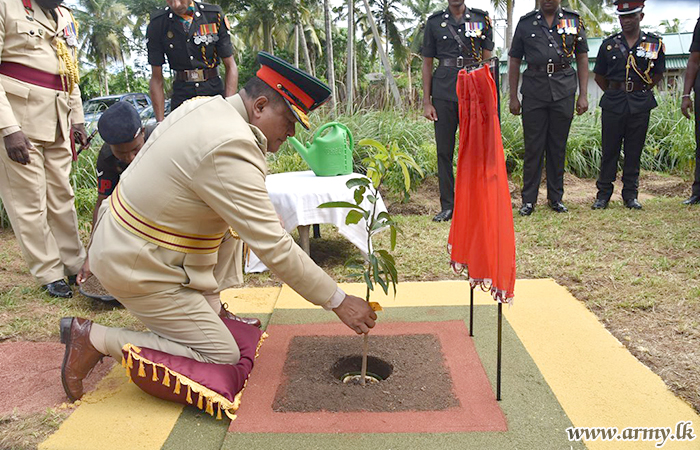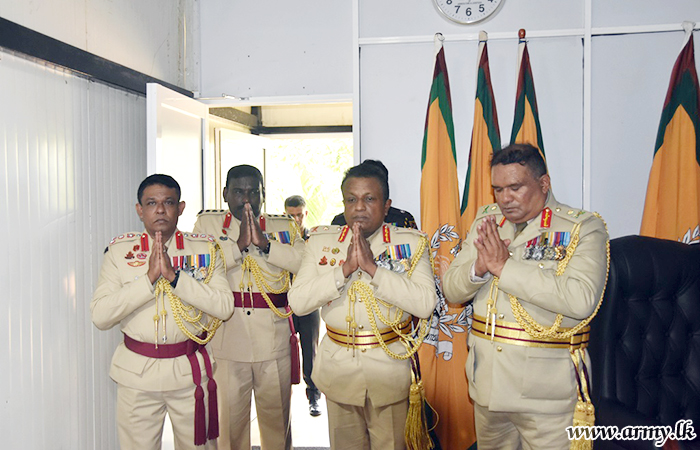 At the auspicious minute, he afterwards placed his signature in an official document and signified the acceptance of the new office, amid 'Pirith' chanting of the members of the Maha Sangha. Adding memories to the day, he planted a sapling in the compound and posed for a few photographs with the Regimental Staff.