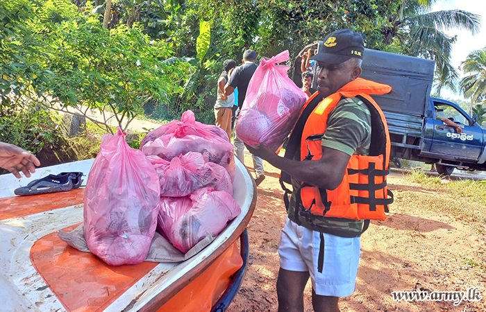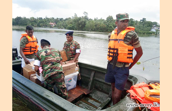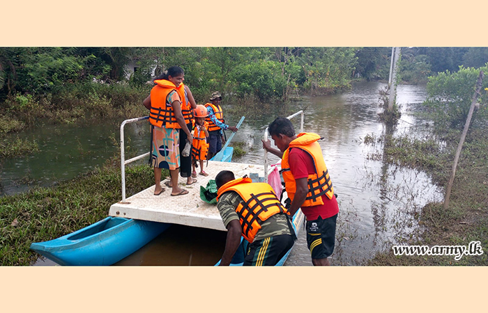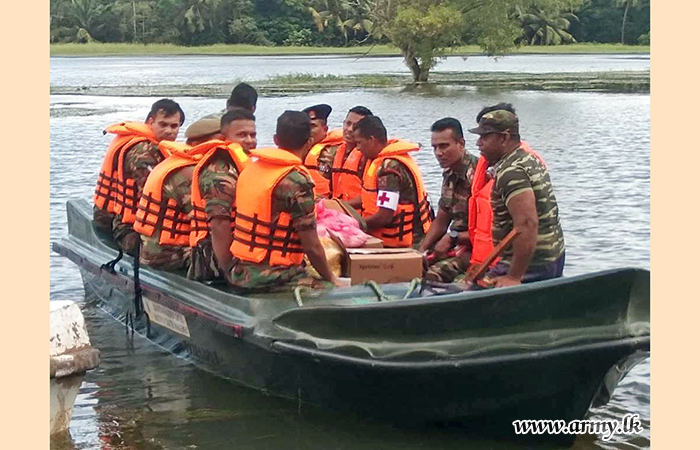 Meanwhile, 61 Infantry Division troops together with 9 Sri Lanka Sinha Regiment troops continues flood relief operations at Aththudawa, Nariduwa and Naimbala areas by providing transport facilities by boats and military vehicles.