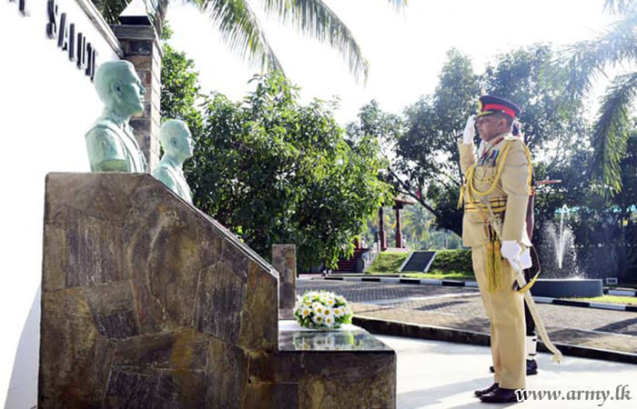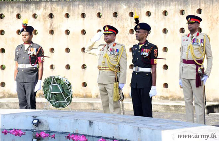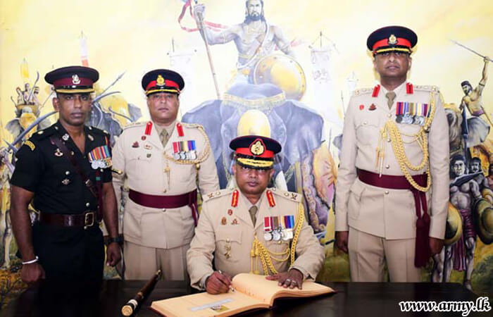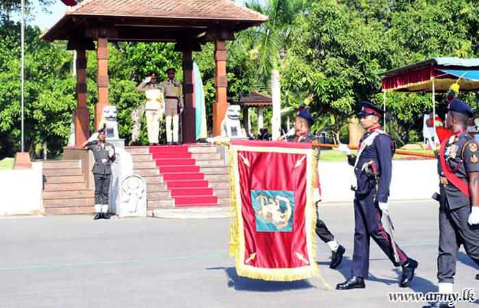 Upon arrival, he was welcomed by the Regimental Centre Commandant at the main entrance and was accorded a Guard Turnout. By giving due respect to fallen war heroes who made a supreme sacrifice to safeguard the motherland from terrorists during three decades of war, Major General S.R.B Aluvihare RWP RSP ndu psc afterwards laid a flower wreath at the fallen war heroes’ monument and PWV recipients` monument before he was saluted in a ceremonial parade at the parade square.