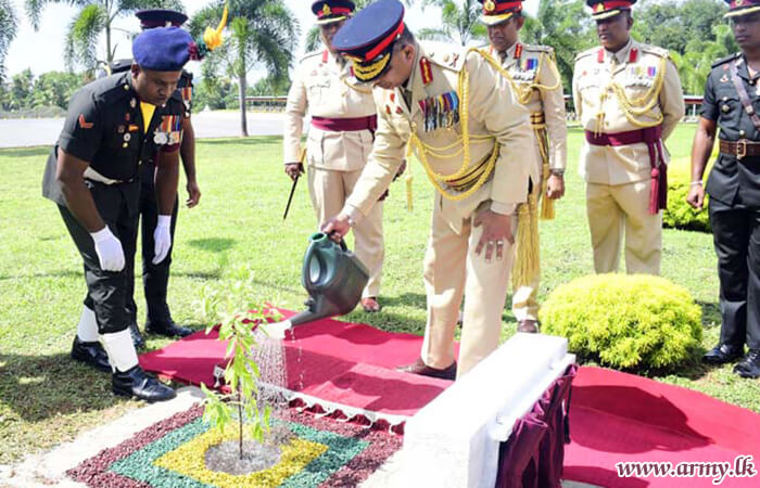 Giving prominence to religious traditions, Major General S.R.B Aluvihare RWP RSP ndu psc took over duties after leaving his signature for an official document to signify the acceptance of new responsibilities amidst chanting of ‘Pirith’. Leaving another memory, the incoming Senior Officer planted a sapling in the Regimental Centre compound, and later posed for group photographs.