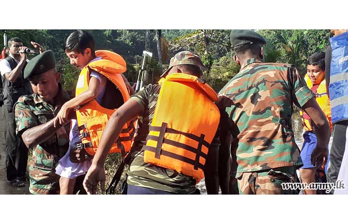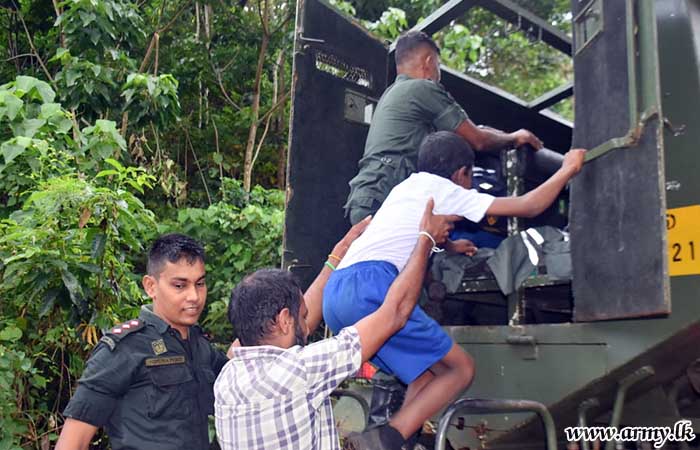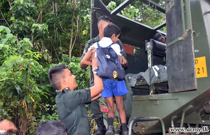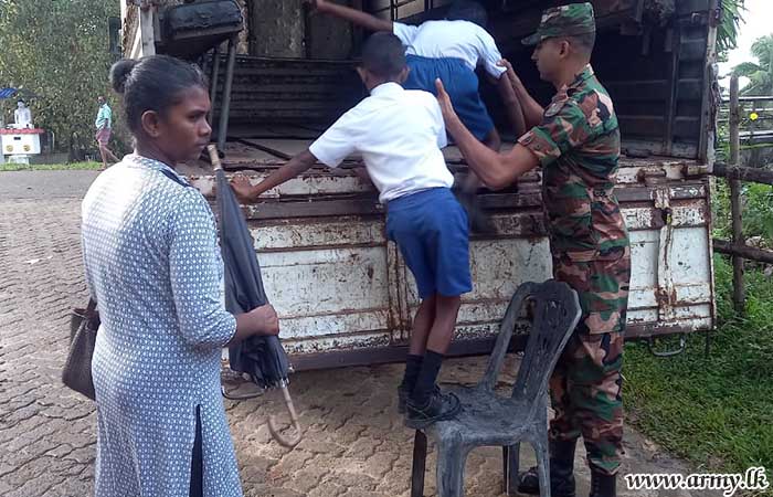 61 Infantry Division troops, together with 9 Sri Lanka Sinha Regiment troops arranged transport facilities for students in flood-affected areas who were to sit for the Grade 5 examination on Sunday (15 Oct) on the instructions of Major General R.A.J.N Ranasinghe RSP USP ndc, General Officer Commanding of the 61 Infantry Division.