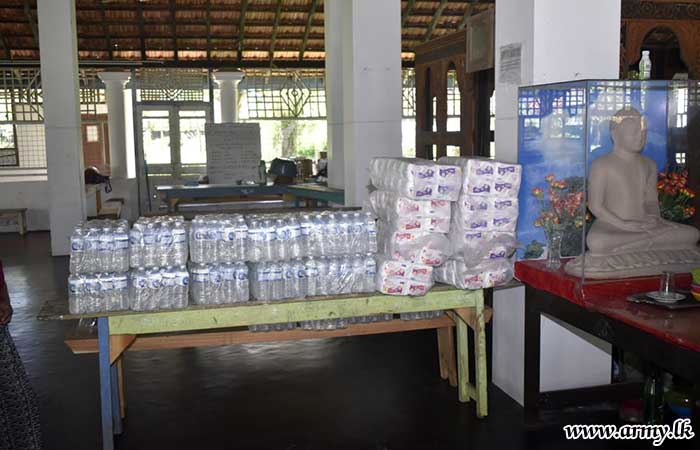 In the meantime, at the request of Major General R.A.J.N Ranasinghe RSP USP ndc, Ven Kahagolle Somarathana Thero of Sidhuhath Foundation, Galle provided 200 sanitary napkin packets and 1000 drinking water bottles for 242 members of 72 flood-affected families who are temporarily residing at Hittetiya Rajamaha Viharaya in Matara.
