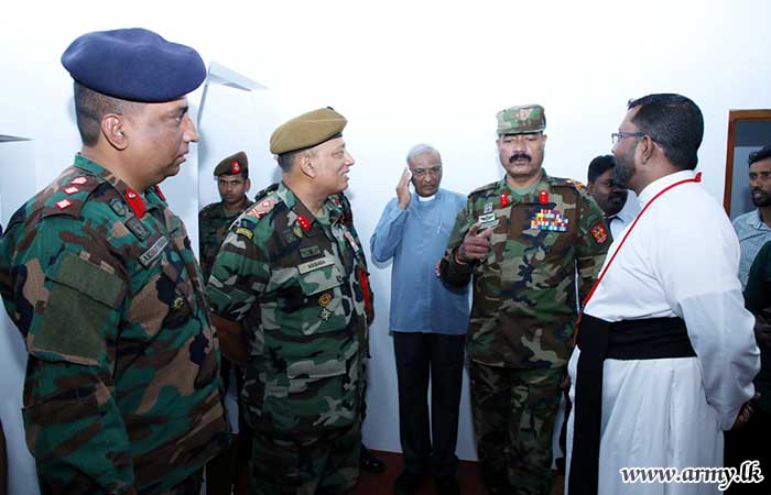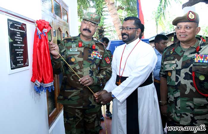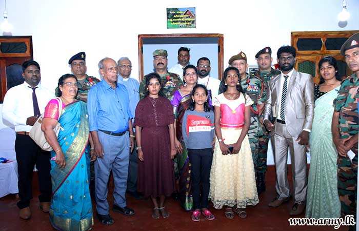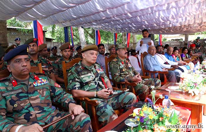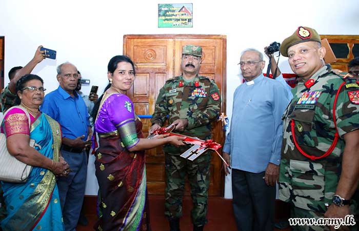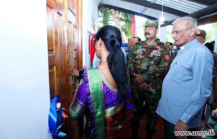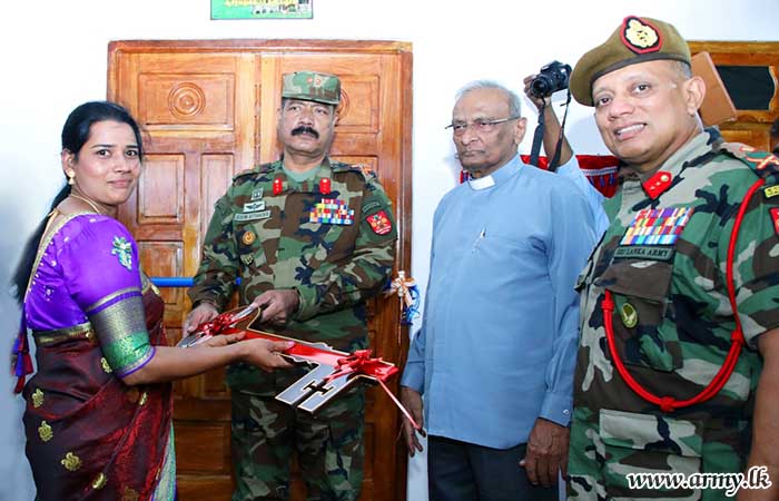 The formal handover of keys to the beneficiary took place in the presence of Major General S.R.K Hettiarachchi RWP RSP VSV USP ndu psc, Commander, Security Forces - Jaffna and Major General Y.A.B.M Yahampath RWP RSP ndu psc, General Officer Commanding, 52 Infantry Division. The construction of the new house was provided by 11 Sri Lanka Engineers (SLE) and 5 Corps of Engineer Service Regiment troops.