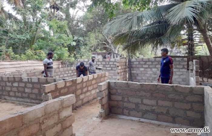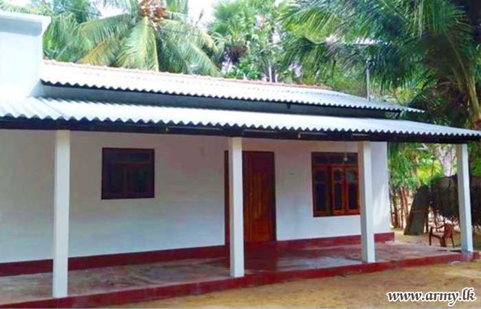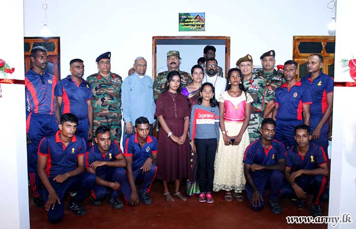 11 Field Engineer Regiment (11 SLE) troops of the 523 Infantry Brigade and the 52 Infantry Division of Security Force HQ - Jaffna (SFHQ-J) erected this 771st house in the Jaffna peninsula for another low-income group family who has lost their bread-winner but the widow is living with their three girls without a well- protected house.