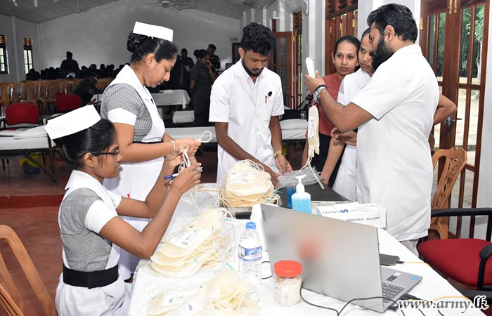 90 Army personnel, representing the 641, 642, and 643 Infantry Brigades as well as the 8 Sri Lanka Artillery, 23 Vijayabahu Infantry Regiment and 5 (v) Sri Lanka Sinha Regiment, voluntarily stepped forward to donate their life-saving support.