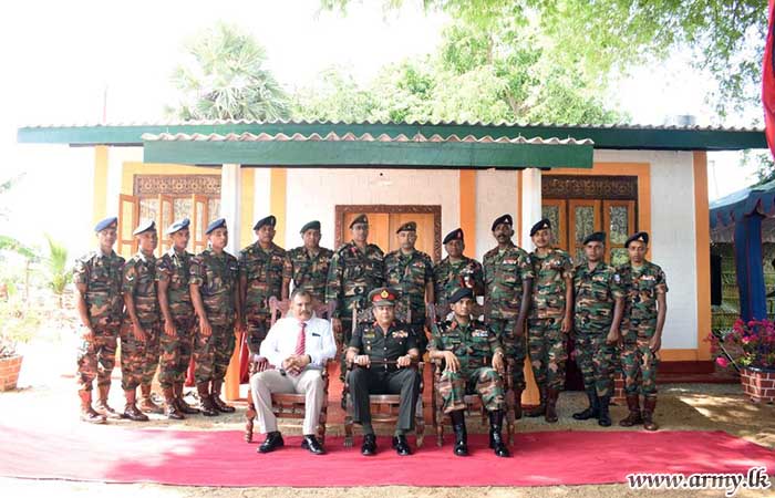 8 SLA troops under the supervision of the Commanding Officer completed the construction within a short span of time. In addition, the house was fully furnished and all the essential items were gifted to them during the house-warming ceremony.