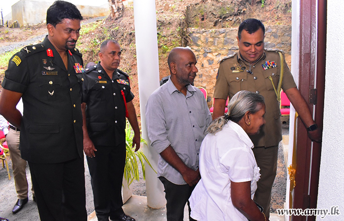 Responding positively to a humanitarian request, 10 Gajaba Regiment and 2 (v) Sri Lanka Sinha Regiment troops of the 11 Infantry Division of the Security Force HQ-Central following guidance given by the Commander of the Army erected four new houses for four deserving families in Aruppola, Kandy and vested them in the beneficiaries on 17 October during separate ceremonies.