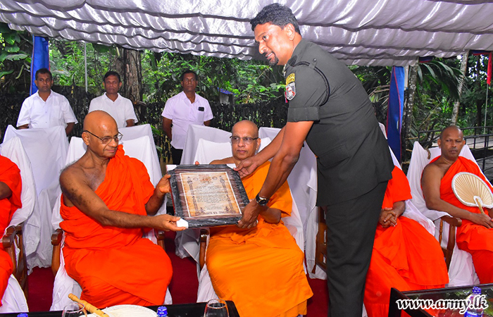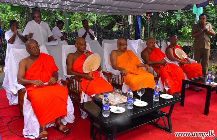 Most Ven Sri Pagnananda Gnanarathanabidhana Mahanayaka Thero of the Asgiriya Chapter, Major General R.M.M Ranasinghe General Officer Commanding of the 11 Infantry Division, Brigadier W.M.S.N Eragoda RWP RSP USP, Brigade Commander, 111 Infantry Brigade, Senior Officers, Officers, Other Ranks and governmental officials attended the house-warming ceremonies.