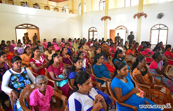 Considering the nunutritional requirements of pregnant mothers of low-income families, the 243 Infantry Brigade of the 24 Infantry Division under command to the Security Force Headquarters - East (SFHQ - E) distributed nutritional dry ration packs among 100 pregnant Tamil women residing in Kokkadichcholai area in Batticaloa on Friday (20 Oct) after inviting them to the Kokkadichcholai cultural centre.