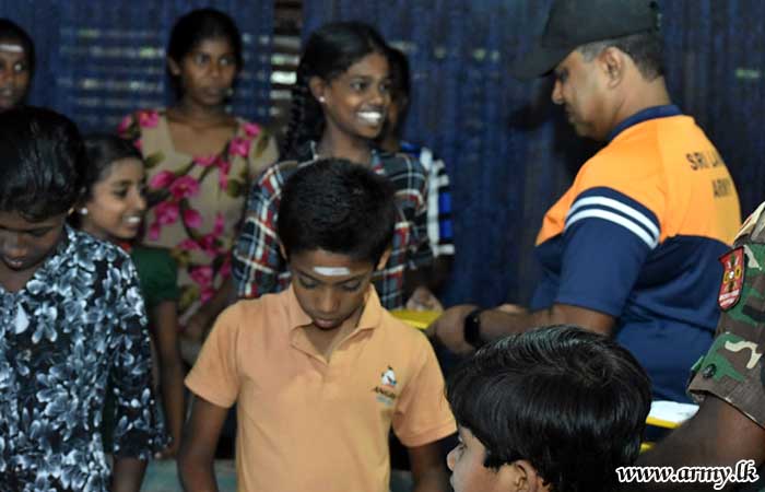 With the objective of evaluating the progress of the ongoing Army-initiated English language teaching classes for under-privileged children in the Jaffna peninsula, Major General S.W.B Welagedera RSP VSV USP ndc, General Officer Commanding, 51 Infantry Division visited the location and met the Army teaching staff, students and their parents on Friday (20 Oct).