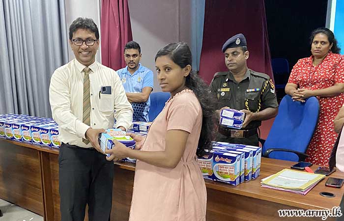 216 selected Kolonnawa area families who deserve support for livelihood received 432 milk powder packets, sponsored by Fonterra Company through the coordination of the troops serving the Security Force HQ - West and the Green Agriculture Operations Centre on Wednesday (18 Oct).